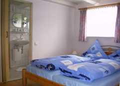 Der Schlafraum besteht aus einem Doppelbett mit Nachtschränken und Kleiderschrank. Vom Schlafraum gelangt man direkt zur Dusche und WC.